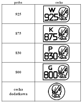 Zgodnie z obowiązującym nas prawem każda produkcja wykonana ze srebra powyżej 5g musi zawierać cechę probierczą, która jest prawnie chroniona znakiem urzędowym. Taka cecha potwierdza autentyczność metalu szlachetnego w danym produkcie.